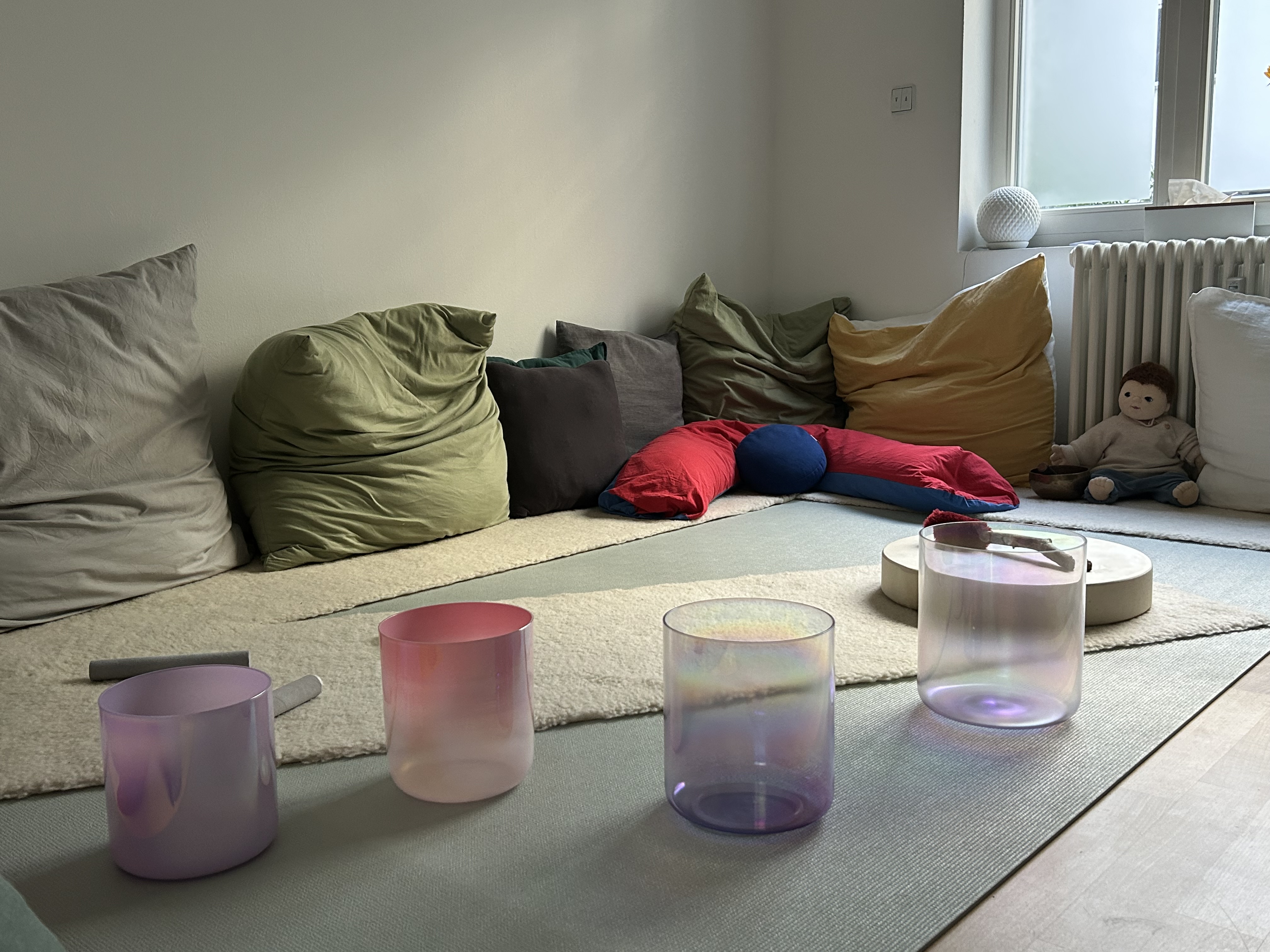 Als Sound Medicine Practitioner arbeite ich mit strukturierten Klangmethoden, die darauf abzielen, das Nervensystem zu beruhigen und die Aufmerksamkeit nach innen zu lenken. Ich nutze Kristallklangschalen, deren klare und gleichmäßige Töne eine stabile, ruhige Klangumgebung schaffen.